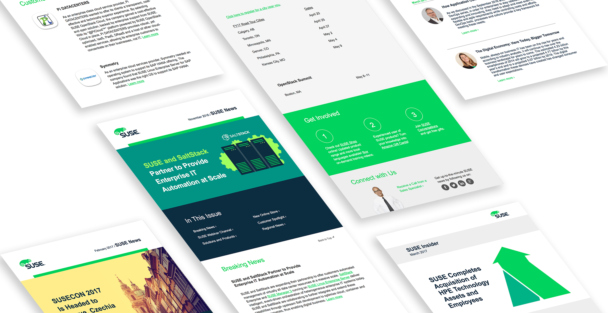 SUSE provides a renowned open source Enterprise Linux Server OS. SUSE is a client of EKR and Jess Brown was given this project for development and production of the email template using provided design assets and content.